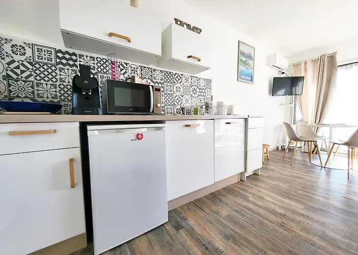 - ❓Is there a kitchen available at this beachfront "Azur Antheor" 2-4Pers Vue Mer D'Exception apartment for guest use?Yes, this beachfront "Azur Antheor" 2-4Pers Vue Mer D'Exception apartment is furnished with a mini-kitchen and offers a toaster as well.
